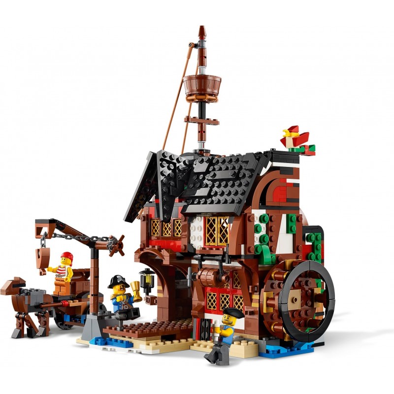 Tato stavebnice LEGO Creator 3 v 1 nabízí 3 různé stavitelské možnosti – a bezpočet příběhů, které s modely prožijete. Děti si mohou postavit pirátskou loď, kterou pak přestaví na pirátskou krčmu nebo strašidelný ostrov lebek. Také mohou dát prostor své tvořivosti a vymyslet něco úplně nového.
