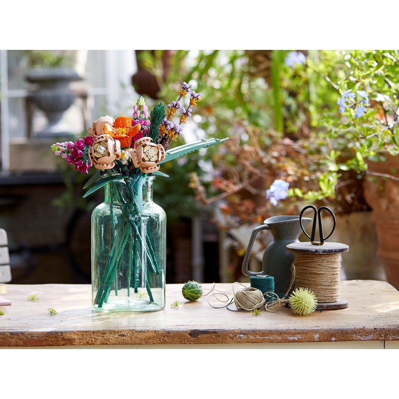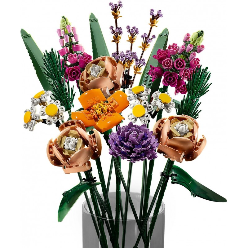 Všechny detaily kytice jsou vyrobeny z LEGO součástek a lze je přizpůsobit tak, aby zanechaly jedinečný dojem. Většina květin má okvětní lístky, které lze přeuspořádat, takže si můžete užít zábavu při vymýšlení různých designů. Rozeberte stonky a znovu je složte jiným způsobem, čímž změníte výšku a tvar vašich květin. Sada je součástí botanické LEGO kolekce pro dospělé a obsahuje několik dílků z rostlinného plastu, který se trvale udržitelným způsobem vyrábí z cukrové třtiny.