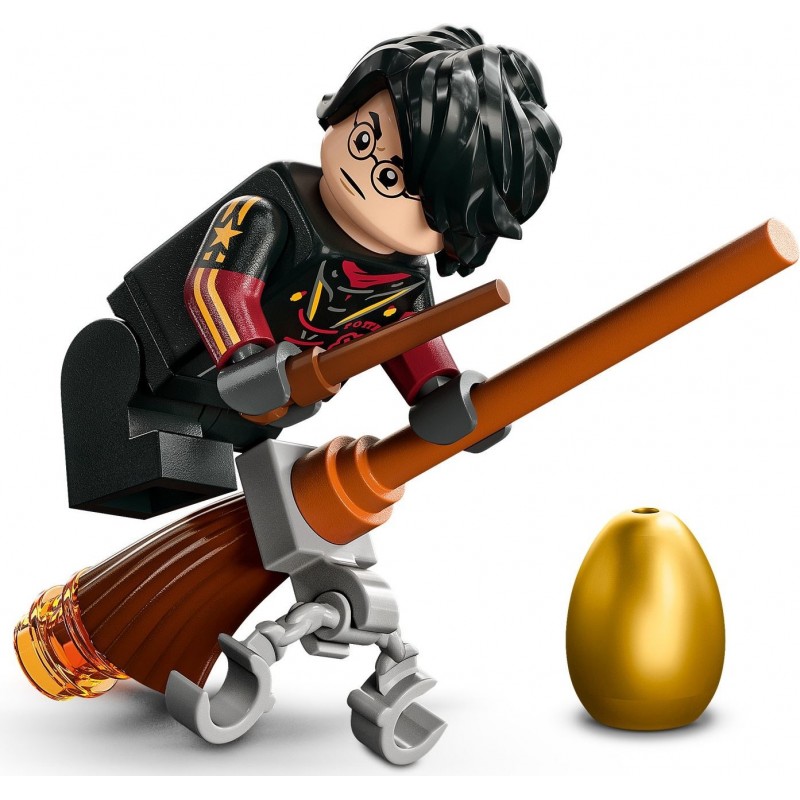 Model maďarského trnoocasáho draka z kostek s černými šupinami, špičatým ocasem a ohnivým dechem. Toto ikonické stvoření představuje nejen jedinečný výstavní kousek, ale umožňuje dětem s modelem také létat. Klička na zadní straně slouží k ovládání mechanismu, který pohybuje křídly s rozpětím 40 cm nahoru a dolů. Tento sběratelský model stojí na bytelném podstavci a je doplněn minifigurkou Harryho Pottera na koštěti. Kouzelná je pak i bezplatná aplikace LEGO s návody, která dětem umožňuje si model během stavění přibližovat a otáčet.