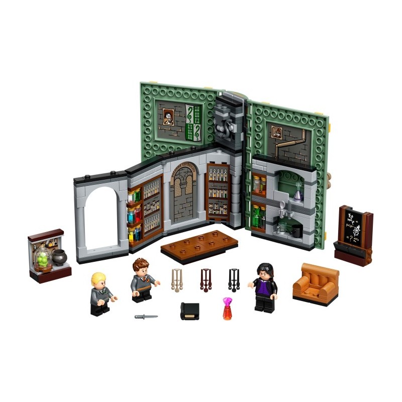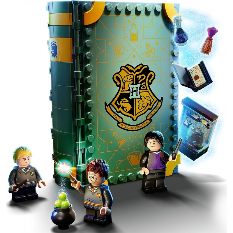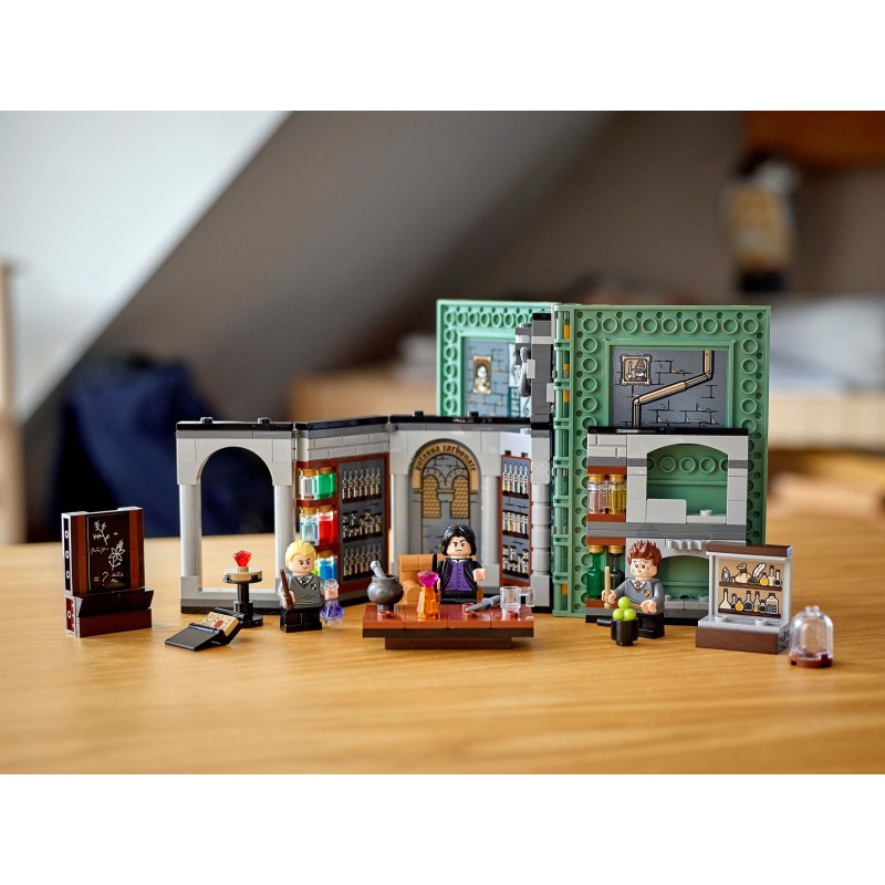 Magická stavebnice doslova překypuje funkcemi a doplňky, které inspirují ke kreativnímu hraní. Některé jsou vestavěné, například poličky, a některé naopak volně umístěné, jako třeba nábytek a tabule, které lze vyndat a zvětšit tak prostor na hraní. Tuto uhrančivou sadu s Harry Potterem lze kombinovat i s ostatními ve sbírce. Každá z nich děti přenese do jiné bradavické učebny a vyznačuje se jedinečnou barvou a motivem. Jednotlivé stavebnice této řady lze propojit a vytvořit 360stupňové herní prostředí Bradavic.